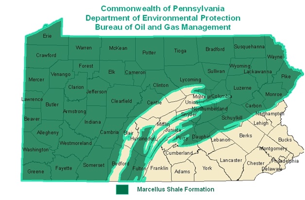 Fracking is already a big deal in Pennsylvania, as the neat map at the link demonstrates: 65 operators, 5,982 active wells, as of June 30, 2012. Almost the entire state sits atop the Marcellus Shale formation, which is where all the good stuff is: