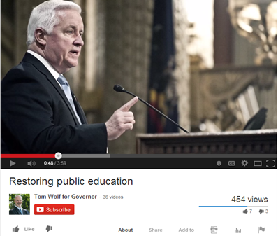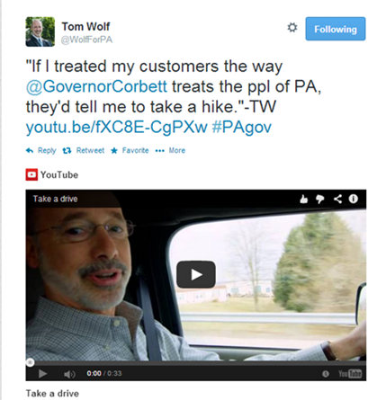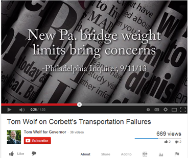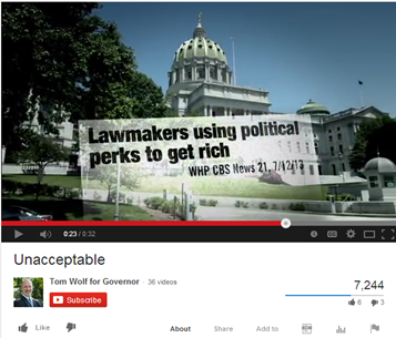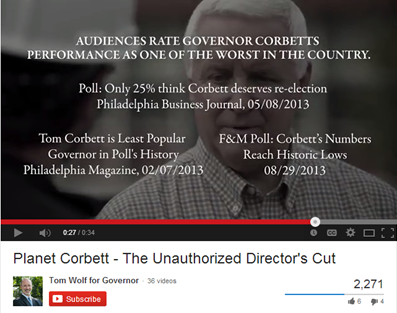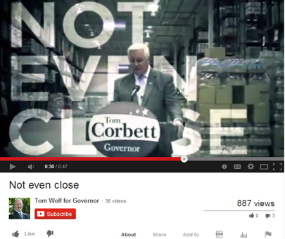 Below are examples of Wolf’s negative ads against Governor Tom Corbett.