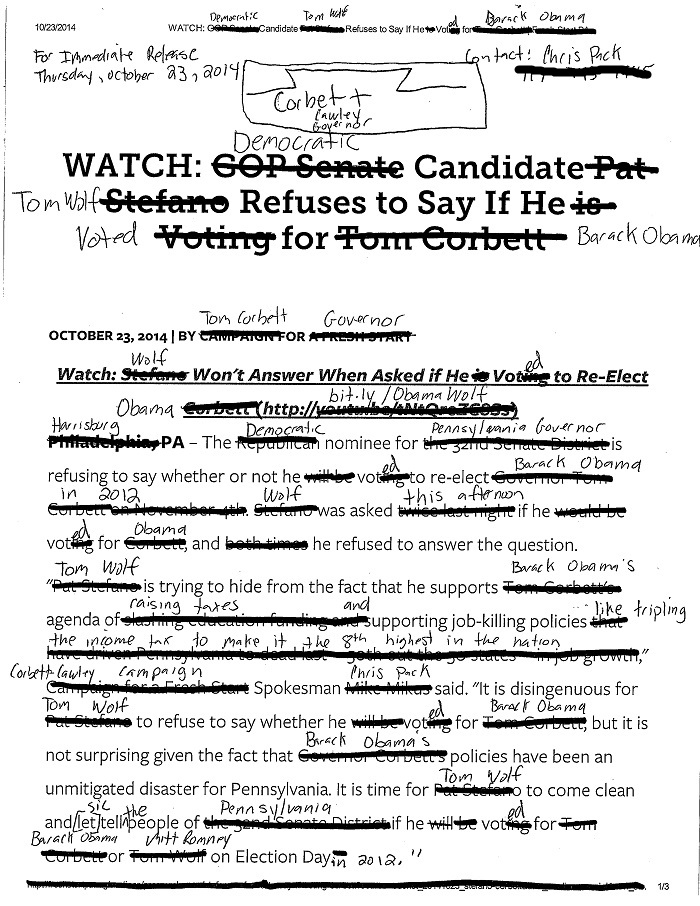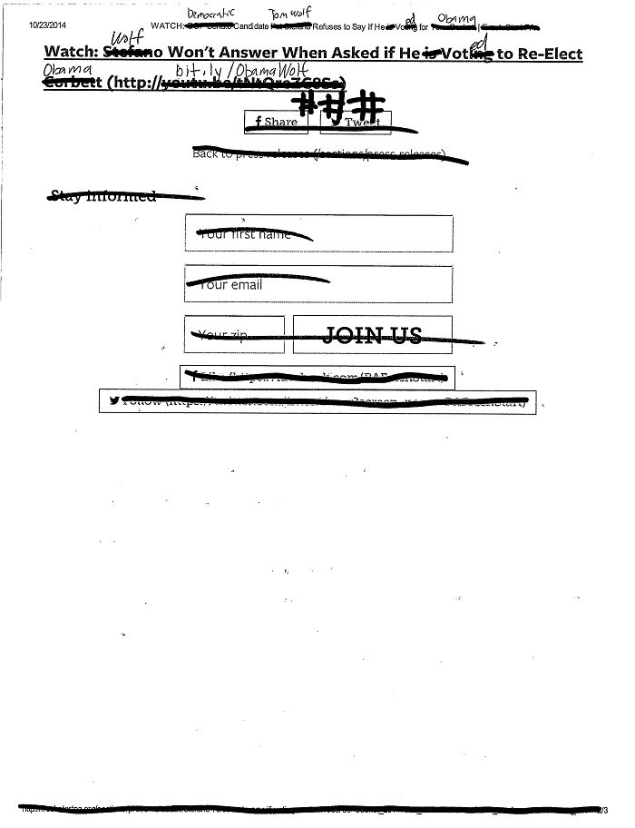Note: Please click here to view the video of Tom Wolf refusing to say if he voted for Obama after he left the Digital First Editorial Board meeting earlier this afternoon. To download a PDF of "our" press release click here.